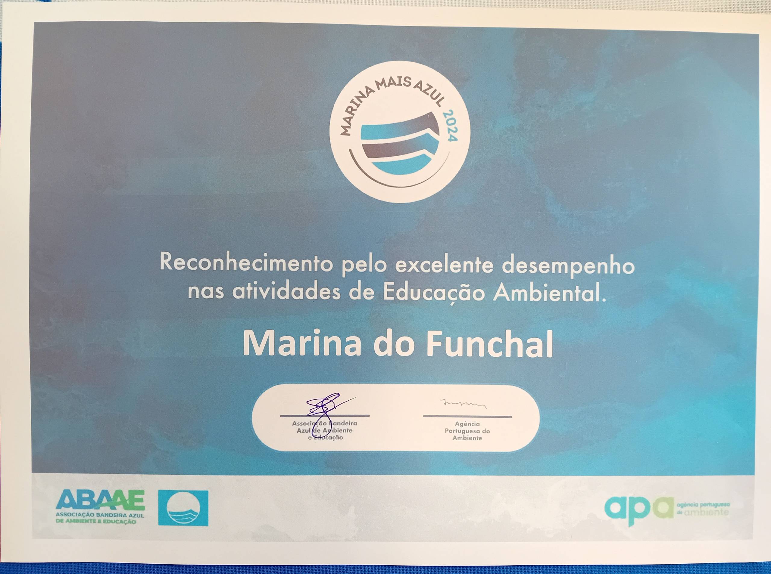 Na mesma reunião também foi atribuído à Marina do Funchal prémio MARINA MAIS AZUL 2024, com o Reconhecimento pelo excelente desempenho nas atividades de Educação Ambiental, pela Associação Bandeira Azul de Ambiente e Educação e pela Agência Portuguesa de Ambiente.