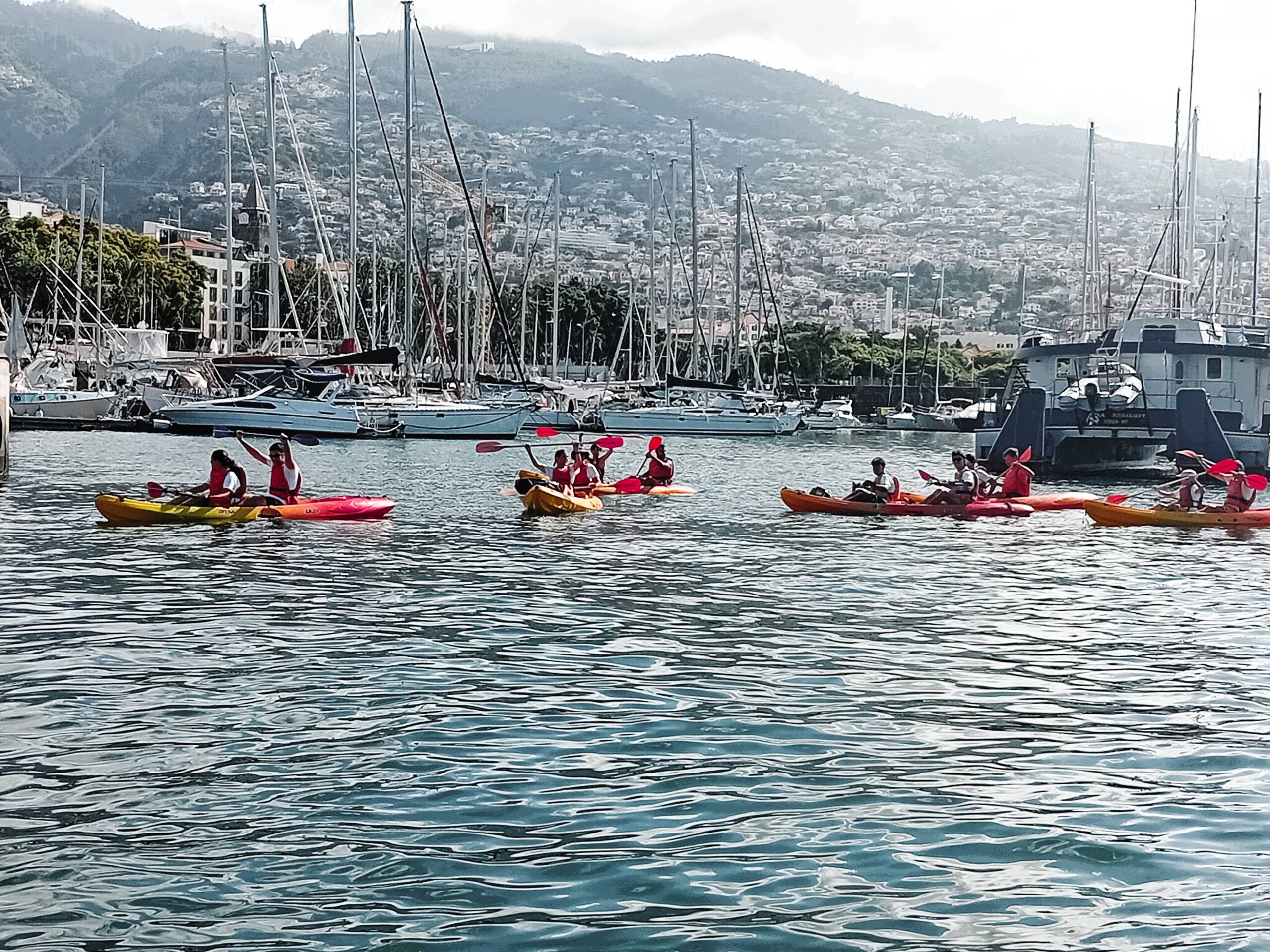 Foram cerca de 15 participantes que disfrutaram desta atividade, num percurso muito agradável, realizado de forma divertida entre a Marina do Funchal e a Quinta Calaça, utilizando caiaques e peneiros para recolher o lixo que se encontrava à superfície do mar.